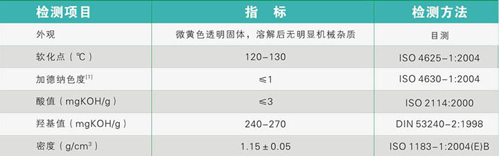 [1] 樹脂50%質(zhì)量分?jǐn)?shù)的溶液,溶劑為質(zhì)量分?jǐn)?shù)50%乙酸丁酯,50%無水乙醇。